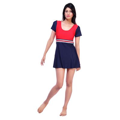 Carrel Imported Swim Lycra Fabric Half Sleeve Round Neck Solid Red & Navy Blue Colored