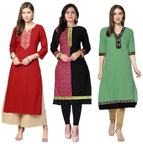 Rhythm 3 in 1 Fabrics Multi Kurta Fabric Cotton Blend Long Kurti Semi Stitched Women