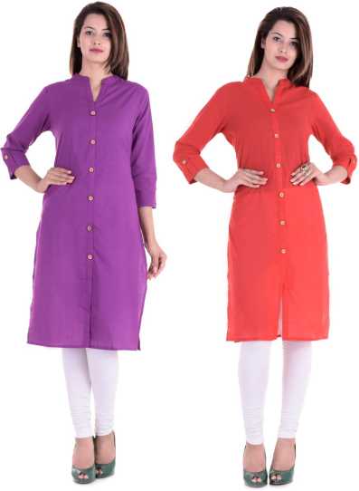 Women Solid Cotton Blend Straight Kurta Purple, Red)