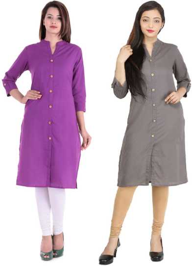 Women Solid Cotton Blend Straight Kurta Purple, Grey)