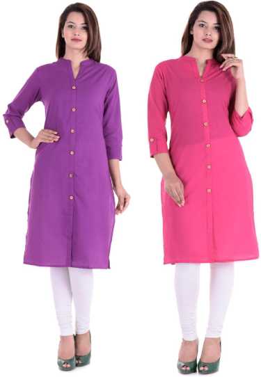 Women Solid Cotton Blend Straight Kurta Purple, Pink)