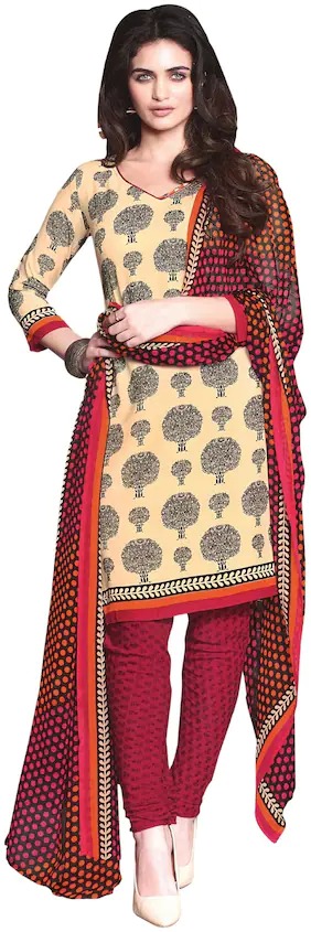 Reya Chennai Beige Unstitched Kurta with bottom & dupatta With dupatta Dress Material