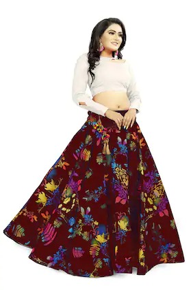 EMPIRE Satin Multi Printed Lehenga & Blouse For Women