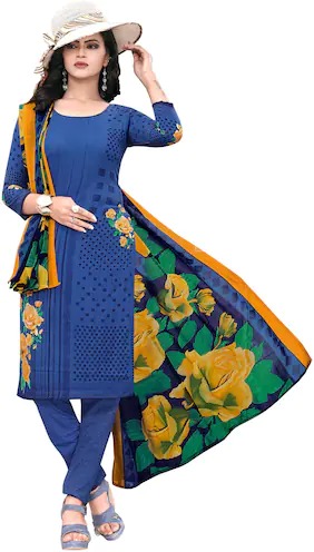 Reya Chennai Blue Unstitched Kurta with bottom & dupatta With dupatta Dress Material