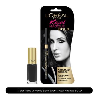 L'Oreal Paris Kajal Magique Bold plus Color Riche Vernis Black Swan combo offer