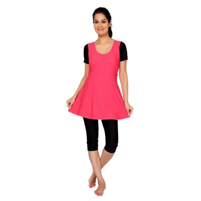 Carrel Imported Swim Lycra Fabric Half Sleeve with Knee Length Shorts Solid Women Swimwear
