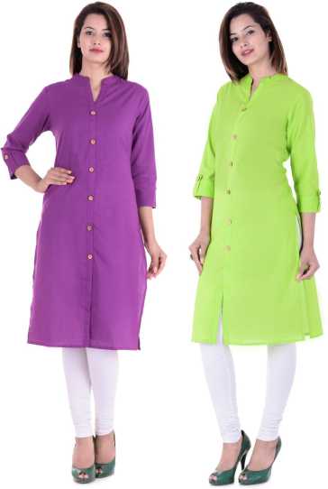 Women Solid Cotton Blend Straight Kurta Purple, Light Green)