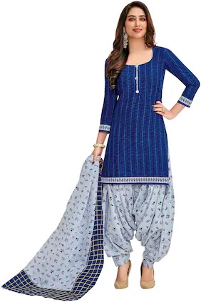 Reya Chennai Blue Unstitched Kurta with bottom & dupatta With dupatta Dress Material