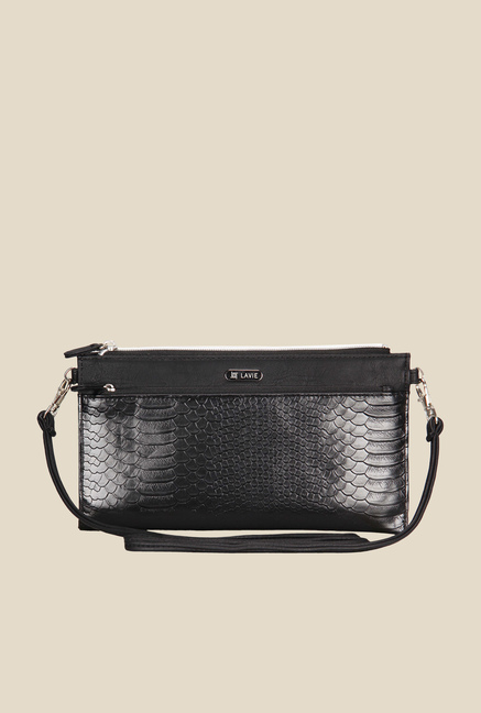 Lavie Dover Black Snake Skin Textured Sling Bag